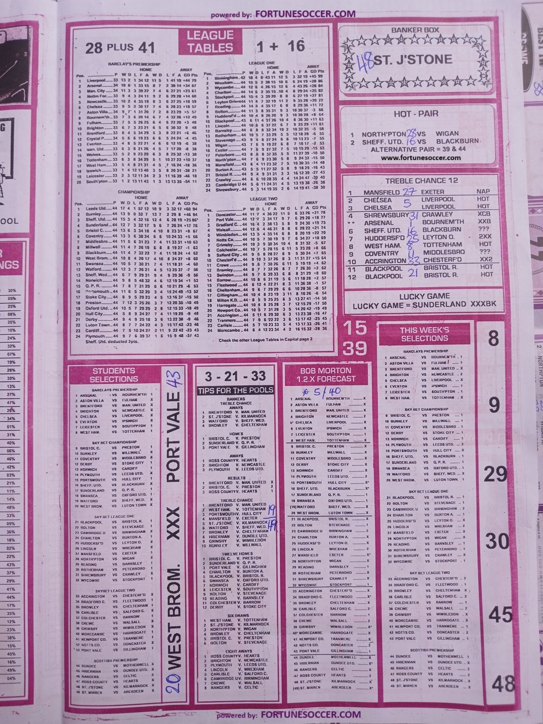 Week 44 Pools RSK Papers 2025: Soccer X Research, Bob Morton