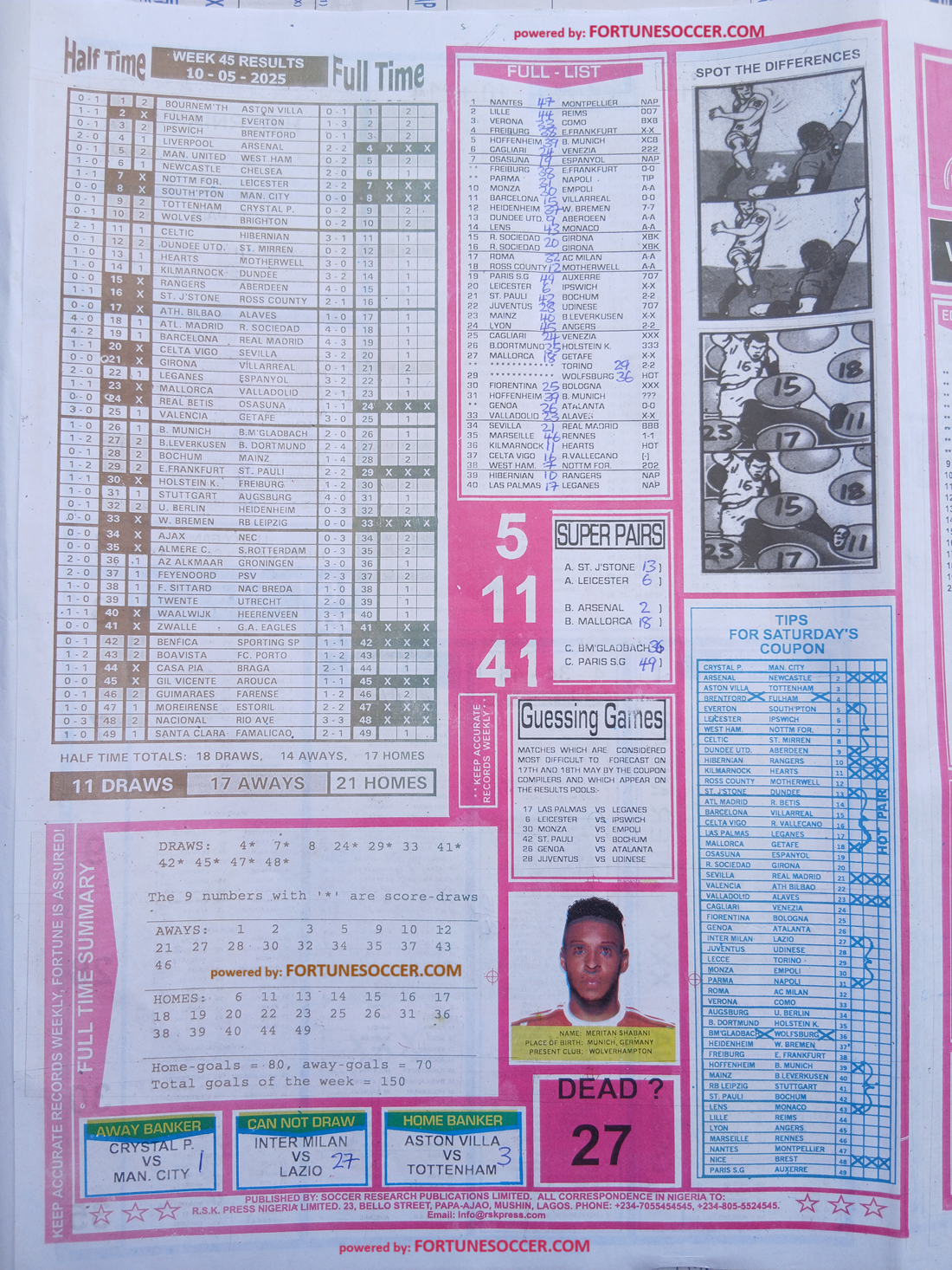 Week 46 Pools RSK Papers 2025: Soccer X Research, Bob Morton